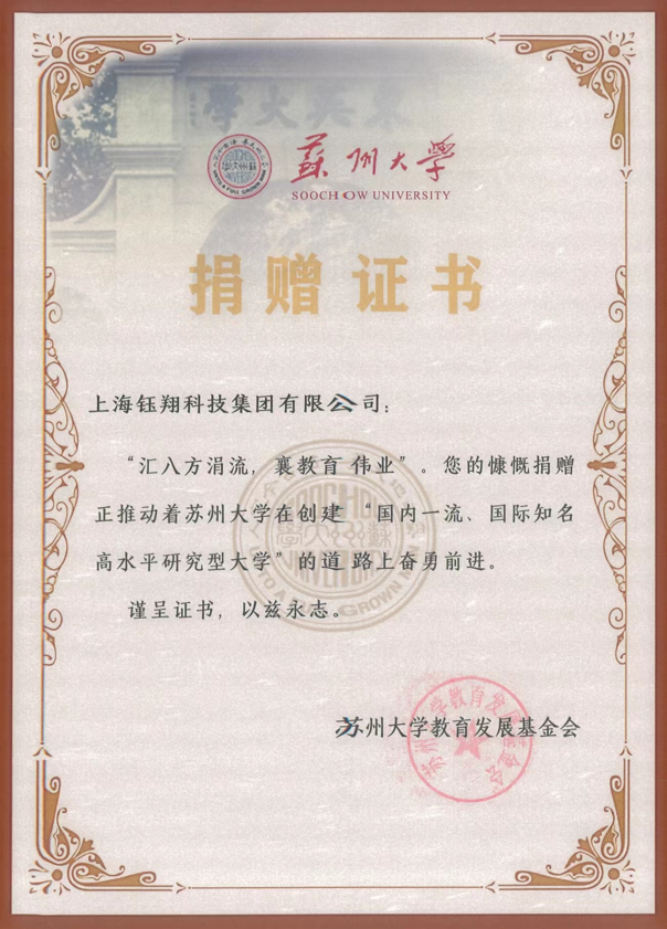 蘇州大學捐贈證書