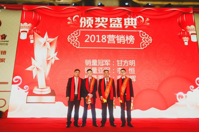 集團黨支部書記秦祖煌宣讀了集團表彰文件,對集團2018年度優秀團隊、優秀管理者、優秀員工、青年崗位能手、三八紅旗手、三八紅旗集體、員工忠誠獎、集團優秀通訊員、營銷冠亞季軍及董事長特別獎共計186人次進行隆重表彰和現場頒獎。每一次頒獎,都伴隨著如潮的掌聲和歡呼聲,受表彰人員走上舞臺,接受一份沉甸甸的榮譽和所有鈺翔人的敬意。